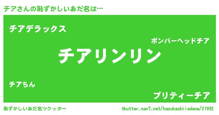 | ヘコむあだ名 | 『チア太郎』『チアにゅー』 |