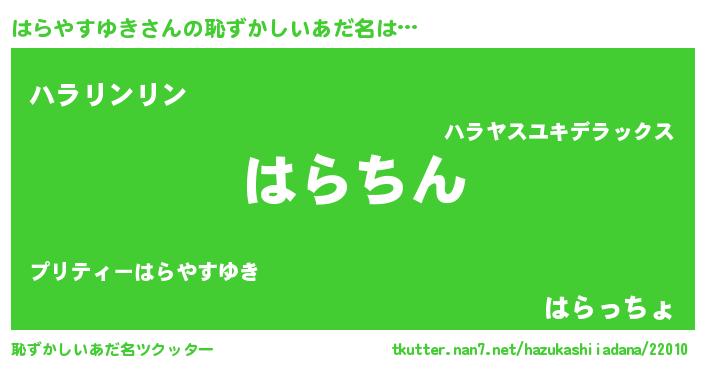 | ヘコむあだ名 | 『はらやすゆき(笑)』『はら太郎』 |