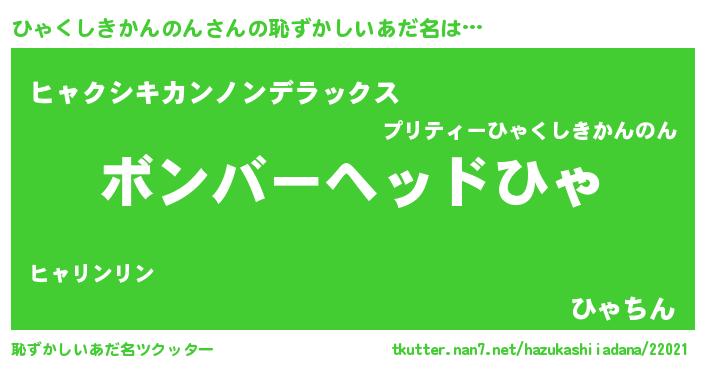 | 意味不明あだ名 | 『住所不定無職ひゃくしきかんのん(84歳)』 |