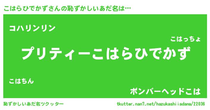 | ヘコむあだ名 | 『こはにー』『こはを』『酢こんぶ』 |