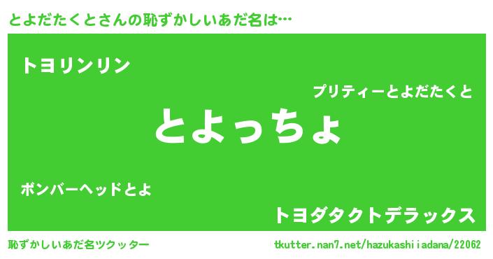 | 意味不明あだ名 | 『とよだたくとフォーエバー』 |
