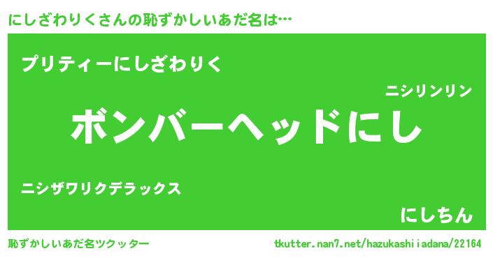 | 男性向けラノベタイトル風あだ名 | 『転生したらにしざわりくだった件』 |