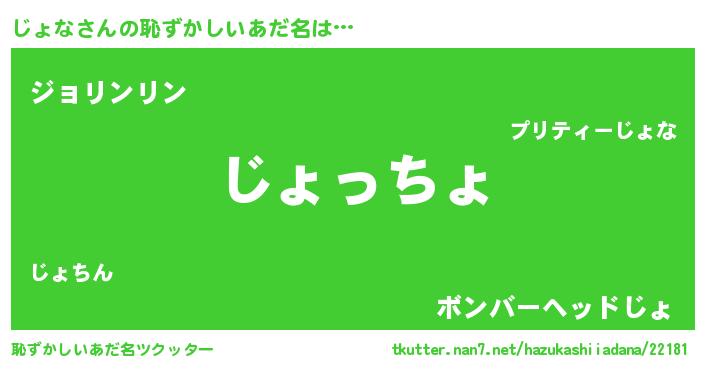 | ヘコむあだ名 | 『酢こんぶ』『じょを』『じょな(爆)』 |