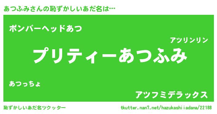 | 胡散臭い通販商品みたいなあだ名 | 『必ず成功する霊験あらたかなお札…その名も「あつふみ」』 |