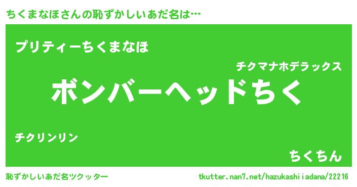 | ヘコむあだ名 | 『ちくっふぃ~』『ちくまなほ(笑)』 |