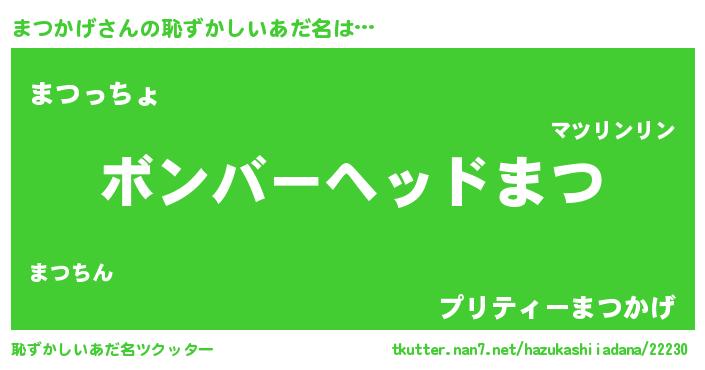 | ヒーロー風カッコイイあだ名 | 『慈愛の使者まつかげ』『仮面マツダー』 |