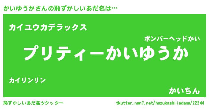 | 男性向けラノベタイトル風あだ名 | 『この素晴らしい世界にかいゆうかを!』 |