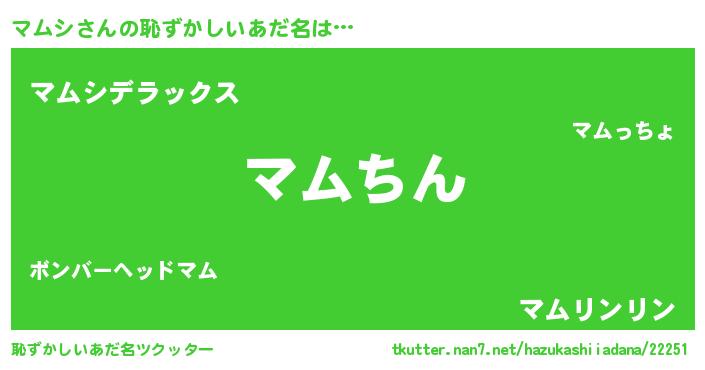 | ヘコむあだ名 | 『マムシ(笑)』『マムっ子』 |