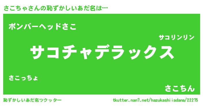 | ヘコむあだ名 | 『さこちゃ(笑)』『さこぷりん』 |