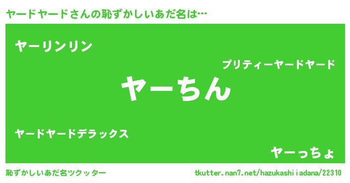 | 男性向けラノベタイトル風あだ名 | 『誰もが恐れるあのヤードヤードが、ぼくの専属メイドになるようです。』 |