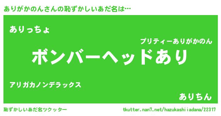 | 意味不明あだ名 | 『ヨモギ科ありがかのん属』 |