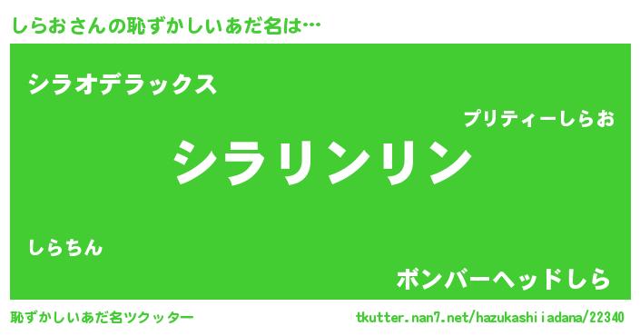 | 男性向けラノベタイトル風あだ名 | 『シラオスレイヤー』『しらおの憂鬱』 |