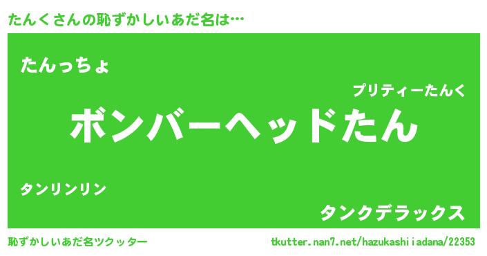 | ヒーロー風カッコイイあだ名 | 『友情の使者たんく』『最強戦士タンク』 |