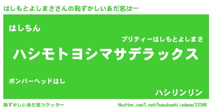 | ヘコむあだ名 | 『はしもとよしまさ(笑)』『はしっぺ』 |