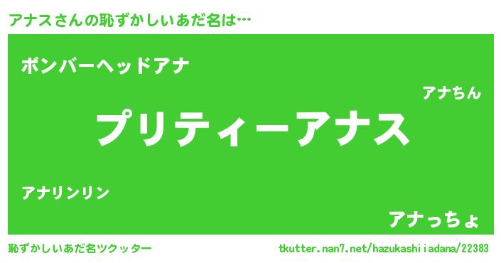 | 女子向けラノベタイトル風あだ名 | 『アナス姫と円卓の騎士』『アナス恋絵巻』 |