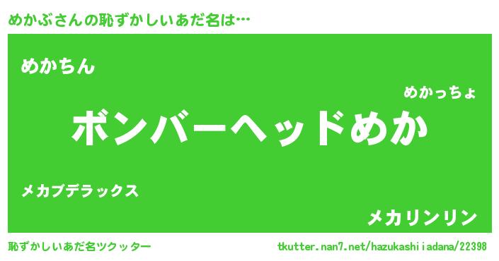 | ヘコむあだ名 | 『めかぶ(小並感)』『めかお』 |