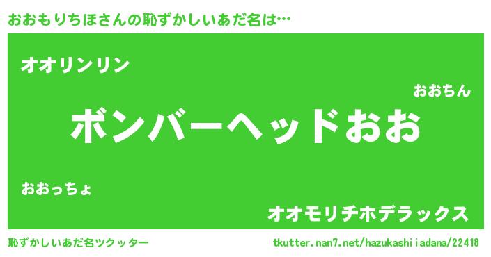| ヘコむあだ名 | 『おお太郎』『おおもりちほ(笑)』 |
