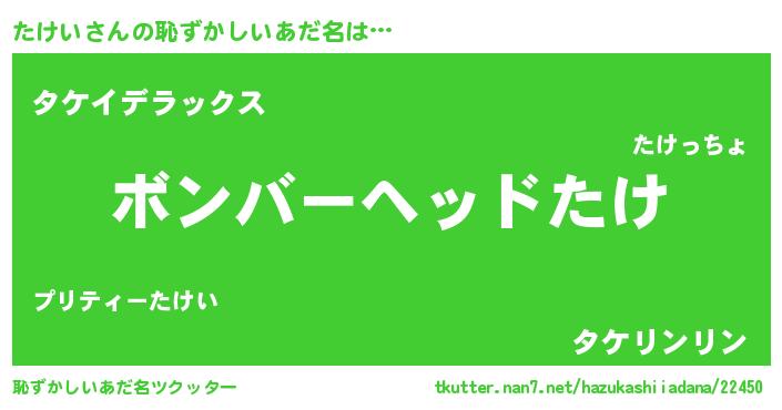 | ヒーロー風カッコイイあだ名 | 『正義の使者たけい』『超時空戦士タケイ』 |