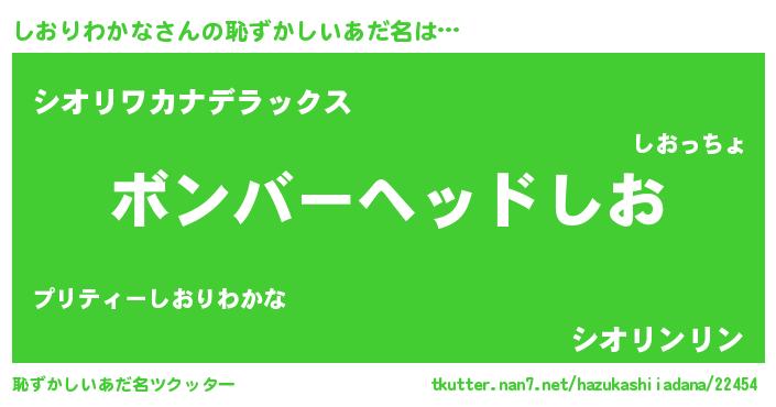 | 意味不明あだ名 | 『住所不定無職しおりわかな(71歳)』 |