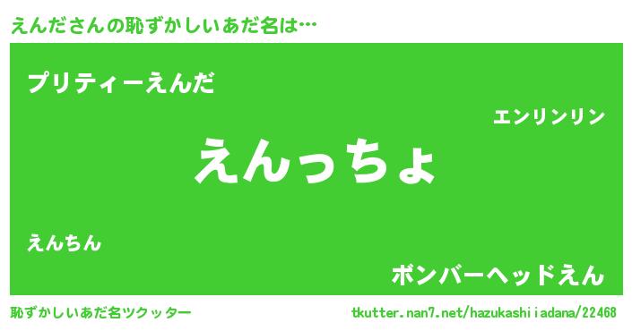 | 意味不明あだ名 | 『えんだフォーエバー』『ペロリンえんだ』 |