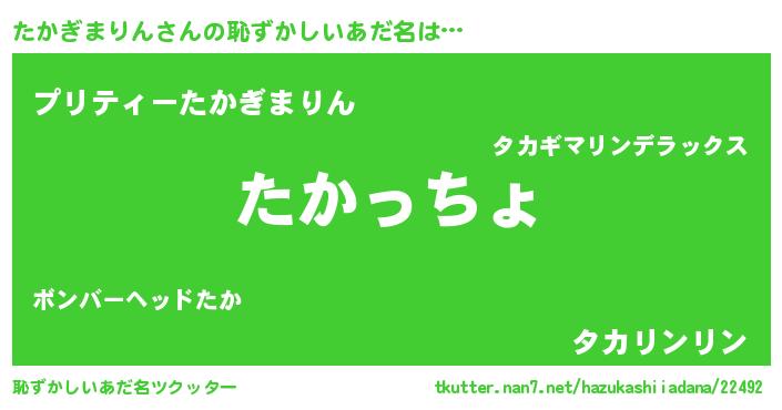 | 意味不明あだ名 | 『たかぎまりんフォーエバー』 |