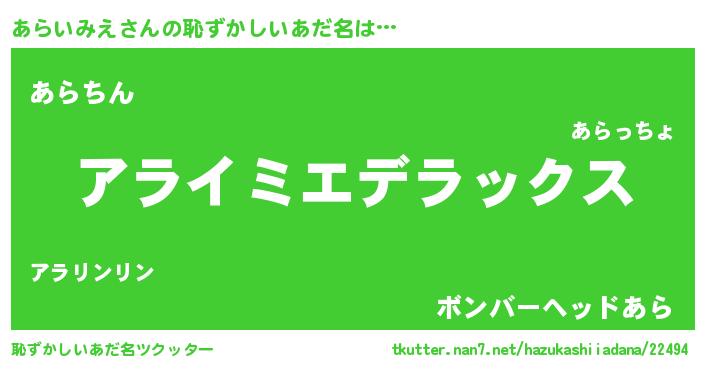 | 意味不明あだ名 | 『自称あらいみえ』『永久保存あらいみえ』 |