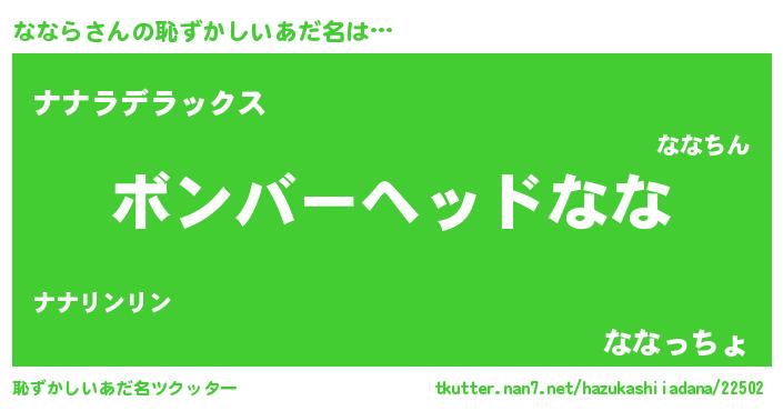 | 女子向けラノベタイトル風あだ名 | 『ななら夫妻のなれそめ』『闇のななら』 |