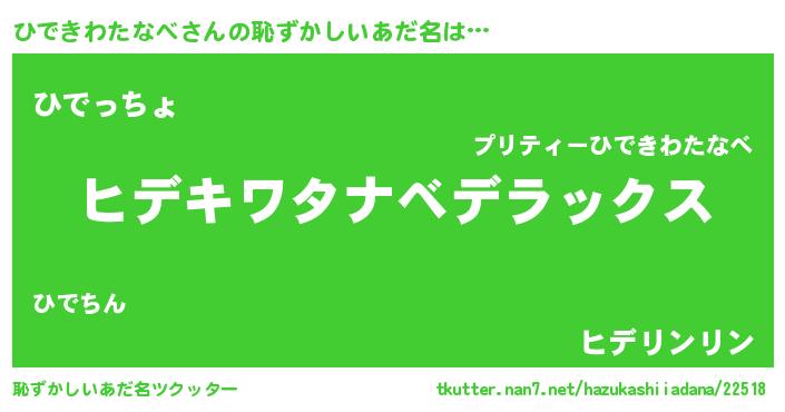 | 意味不明あだ名 | 『自称ひできわたなべ』 |