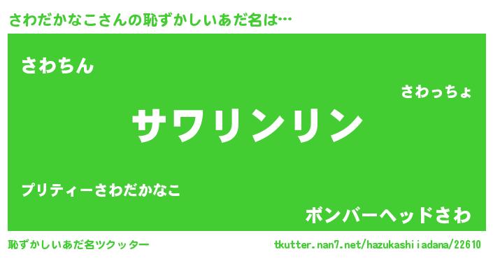 | 可愛いあだ名 | 『さっわぃー』『さわだかなこママ』 |