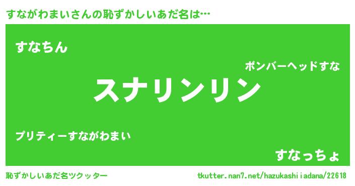 | 可愛いあだ名 | 『すっなぃー』『すながわまいママ』 |
