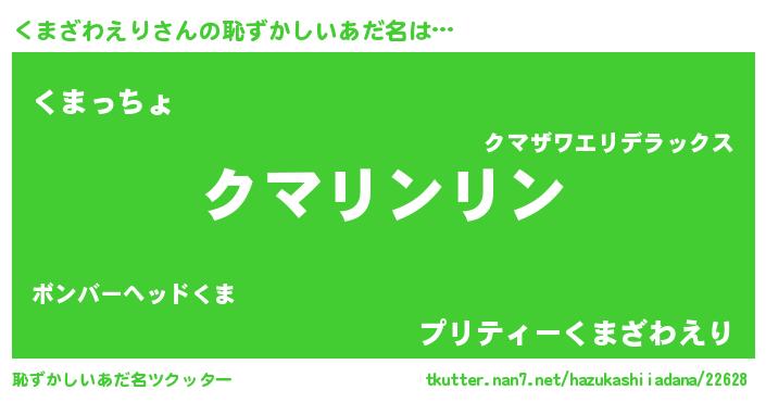 | 意味不明あだ名 | 『とにかく怪しいくまざわえり』 |
