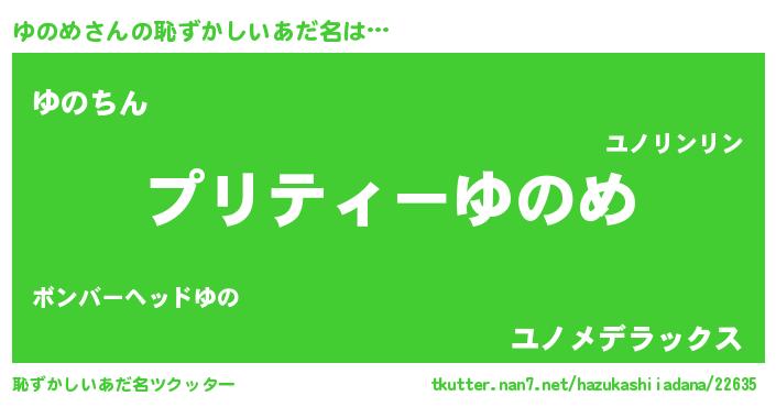 | 意味不明あだ名 | 『ペロリンゆのめ』『永久保存ゆのめ』 |
