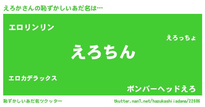 | 意味不明あだ名 | 『永久保存えろか』『たけのこ科えろか属』 |