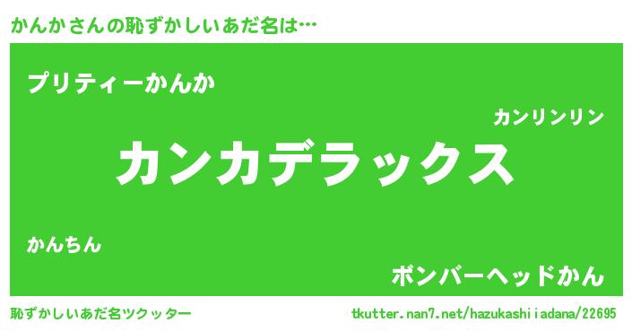 | 意味不明あだ名 | 『自称かんか』『ペロリンかんか』 |