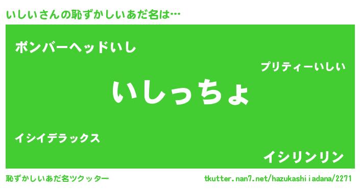 | ヘコむあだ名 | 『豆乳』『いしっ子』『いしにゅー』 |