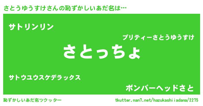 | ポケモン風あだ名 | 『サトウダネ』『ヒサトウユウスケ』 |