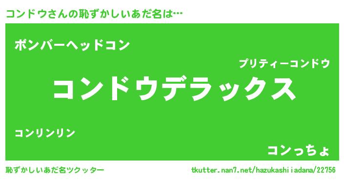 | 男性向けラノベタイトル風あだ名 | 『Re:コンドウから始める異世界生活』 |