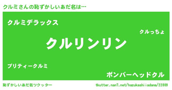 | 意味不明あだ名 | 『とにかく怪しいクルミ』『自称クルミ』 |