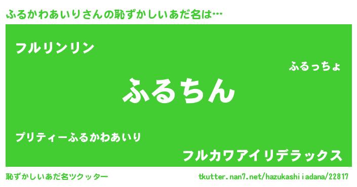 | 男性向けラノベタイトル風あだ名 | 『ふるかわあいりという概念が存在しない退屈な世界 』 |