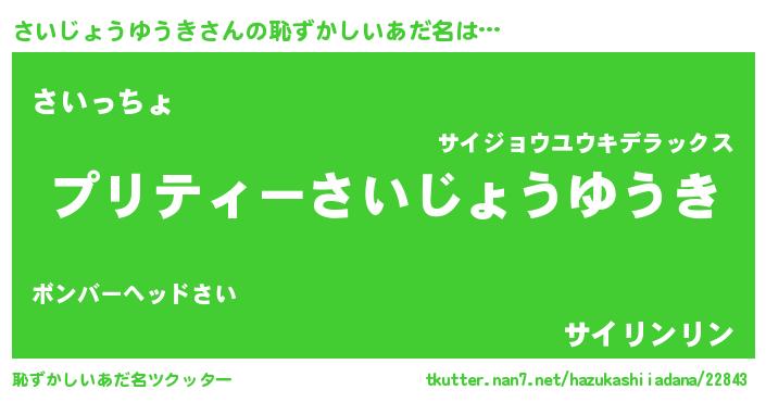 | ヒーロー風カッコイイあだ名 | 『スーパーサイジョウユウキ』 |