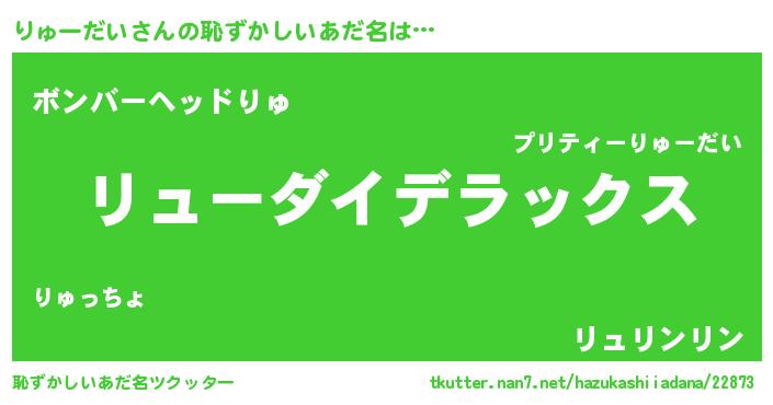 | 女子向けラノベタイトル風あだ名 | 『闇のりゅーだい』『りゅーだい恋絵巻』 |