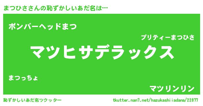 | 男性向けラノベタイトル風あだ名 | 『Re:まつひさから始める異世界生活』 |
