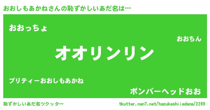 | 男性向けラノベタイトル風あだ名 | 『オオシモアカネスレイヤー』 |