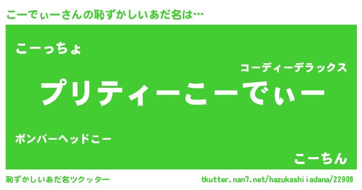 | 男性向けラノベタイトル風あだ名 | 『こーでぃーに滅ぼされるだけの簡単なお仕事です』 |