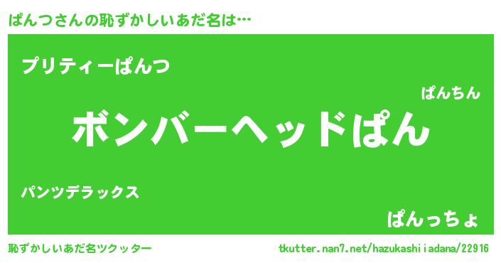 | ヘコむあだ名 | 『ぱんにー』『酢こんぶ』『ぱん太郎』 |