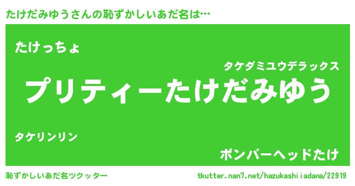 | 肩書あだ名 | 『たけだみゆう船長』『たけだみゆう社長』 |