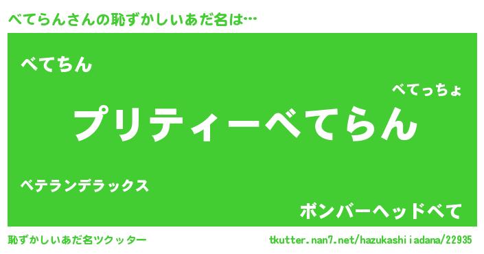 | ヘコむあだ名 | 『べてふぇ~』『べてらん(遠い目)』 |