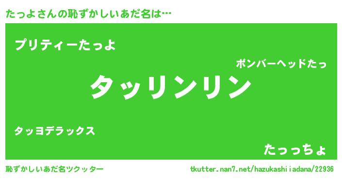 | 意味不明あだ名 | 『とにかく怪しいたっよ』『自称たっよ』 |