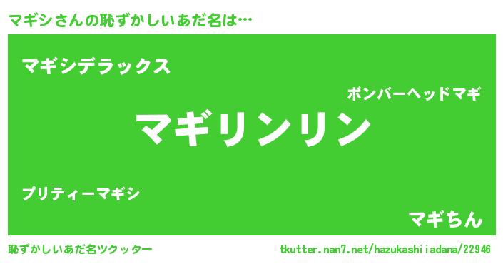 | ヘコむあだ名 | 『マギぷりん』『マギシ(笑)』 |