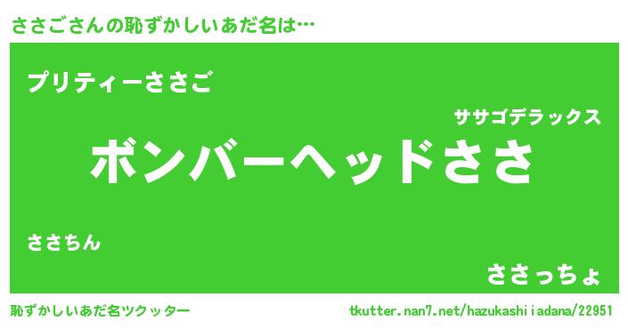 | 意味不明あだ名 | 『眠気覚ましガムささご味』『自称ささご』 |